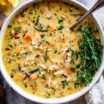 Keywords: Creamy turkey soup, wild rice soup, leftover turkey recipe, comforting soup, autumn soup, holiday leftovers
