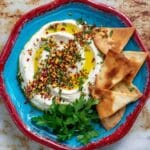 This Creamy Whipped Feta Dip is a luscious and tangy appetizer made by whipping quality feta cheese with Greek yogurt and olive oil to create a smooth, creamy texture. Enhanced with lemon zest, Aleppo pepper, fresh mint and parsley, and optionally topped with toasted pine nuts and crushed pistachios, this dip is perfect for serving with pita chips or wedges, making for a flavorful and elegant snack or party starter.