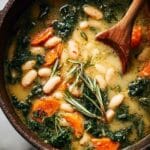 This Creamy White Bean & Spinach Soup with Lemon is a wholesome and comforting dish that combines tender navy beans, fresh spinach, and bright lemon juice for a naturally velvety texture and vibrant flavor. Aromatics like onion, carrot, celery, garlic, and rosemary create a fragrant base, while blending half of the soup creates a creamy consistency without dairy. Perfect for a healthy, nourishing meal served with crusty bread and a drizzle of olive oil.