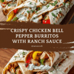 Crispy Chicken Bell Pepper Burritos are a flavorful and satisfying meal perfect for any day of the week. Tender shredded chicken coated in a tangy ranch sauce pairs beautifully with sautéed bell peppers and melted cheddar cheese, all wrapped in a warm, crispy tortilla.