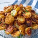 Keywords: crispy potatoes, garlic parmesan potatoes, baked potatoes, garlic potatoes, easy side dish, cheesy potatoes