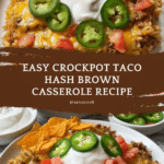 This Crockpot Taco Hash Brown Casserole is a hearty, flavorful one-pot meal perfect for busy days. Ground beef seasoned with taco spices is combined with shredded hash browns, salsa, cheese, and creamy soup, then slow-cooked to perfection. It’s an easy, comforting dish that can be customized with your favorite toppings like tomatoes, jalapenos, and sour cream.