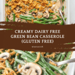Keywords: green bean casserole, dairy free, gluten free, cashew cream, vegan alternative, holiday side dish, healthy casserole, mushroom sauce, crispy shallots