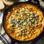 Keywords: Buffalo chicken dip, buffalo dip, party dip, appetizer, game day recipe, cheesy dip, chicken appetizer