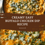 This Easy Buffalo Chicken Dip is a creamy, cheesy, and flavorful appetizer perfect for parties and game days. Made with tender diced chicken, tangy buffalo sauce, and a blend of cream cheese, sour cream, and cheddar cheeses, this baked dip is sure to be a crowd-pleaser. Serve it hot with chips, crackers, or veggies for a deliciously spicy snack.
