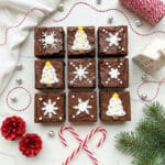 - Decorate Brownies: Transfer the royal icing to a piping bag fitted with a star tip. Pipe festive designs such as Christmas trees or snowflakes on top of each brownie.