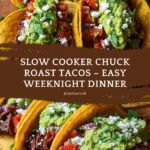 This Easy Chuck Roast Tacos recipe transforms a simple beef chuck roast into tender, flavorful taco filling. Slow-cooked with a blend of spices, beef broth, and optional diced tomatoes, the chuck roast becomes perfectly shreddable and juicy. Served in warm tortillas with your favorite toppings, these tacos make a hearty, satisfying dinner that’s simple to prepare and perfect for busy days.