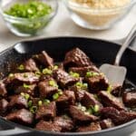 - Garnish and Serve: Remove the cooked steak bites from heat or air fryer. Garnish generously with sesame seeds (omit for AIP) and chopped green onions before serving to add a fresh, nutty finish.
