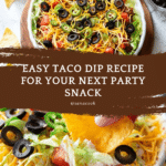 This Easy Taco Dip Recipe is a creamy, flavorful appetizer perfect for gatherings and parties. Made with a base of sour cream or Greek yogurt and cream cheese, seasoned with homemade taco seasoning, and topped with fresh vegetables, olives, and shredded cheddar cheese. Serve immediately with tortilla chips for a crowd-pleasing snack that’s quick to make and delicious.