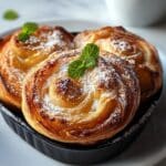 These Flaky Cruffins are delightful pastries made from buttery puff pastry rolled with a sweet cinnamon sugar filling. Baked to golden perfection, they offer a crispy, flaky texture with a warm, spiced sweetness inside, perfect for breakfast or an indulgent snack.