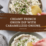 Keywords: French onion dip, caramelized onion dip, party dip, savory dip, sour cream dip, appetizer, snack recipe