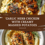 This Garlic Herb Chicken with Mashed Potatoes recipe is a comforting and flavorful meal perfect for any night of the week. Tender chicken breasts are cooked in a savory garlic and herb sauce, served alongside creamy mashed potatoes and sweet glazed carrots. It’s a classic combination that’s easy to prepare and sure to satisfy.