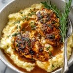 This Garlic Herb Chicken with Mashed Potatoes recipe is a comforting and flavorful meal perfect for any night of the week. Tender chicken breasts are cooked in a savory garlic and herb sauce, served alongside creamy mashed potatoes and sweet glazed carrots. It’s a classic combination that’s easy to prepare and sure to satisfy.