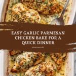 This Garlic Parmesan Chicken Bake is a flavorful and easy dish perfect for busy weeknights. Tender chicken breasts are seasoned with a savory blend of spices and baked under a cheesy, buttery parmesan topping. It’s a comforting meal that pairs well with a variety of sides.
