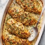 - Serve and garnish: Remove the chicken from the oven and serve immediately, garnished with additional fresh parsley. Pair with a side such as cauliflower rice or baked vegetables, and offer the reserved sauce for dipping. Enjoy your flavorful Garlic Parmesan Chicken Bake!