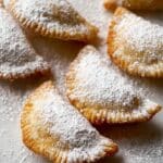 - Step 9: Transfer cooked crescents to a paper towel-lined plate to drain excess oil. While still warm but cool enough to handle, dip each pastry into confectioners’ sugar to coat thoroughly.