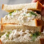Store the prepared chicken filling in an airtight container in the refrigerator for up to 2 days. Assembled sandwiches are best eaten fresh but can be wrapped tightly and refrigerated for up to 24 hours. If refrigerated before slicing, let the sandwiches sit at room temperature for 10 minutes before serving to soften the bread slightly.
