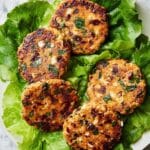 These Greek Chicken Burgers are a flavorful and healthy twist on the classic burger, combining ground chicken with fresh herbs, sun-dried tomatoes, and baby spinach. Cooked on the stovetop or grilled to perfection, they’re served with traditional toppings like tzatziki sauce, crumbled feta, and fresh veggies wrapped in butter lettuce for a low-carb, Mediterranean-inspired meal perfect for lunch or dinner.