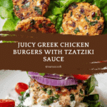 Keywords: Greek chicken burgers, healthy chicken burger, Mediterranean chicken recipe, low-carb burger, grilled chicken patty, tzatziki burger