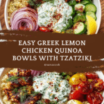 These Greek Lemon Chicken Bowls are a fresh and flavorful meal that’s perfect for any day of the week. Tender, lemon-marinated chicken pairs beautifully with fluffy quinoa and a refreshing tzatziki sauce, making for a wholesome and satisfying dish.