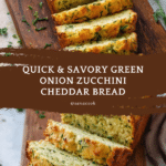 This Green Onion Zucchini Cheddar Quick Bread is a moist, savory loaf packed with sharp cheddar cheese, fresh green onions, and tender zucchini. Made with simple pantry ingredients and baked to golden perfection, it’s a versatile quick bread perfect for breakfast, snacking, or alongside soups and salads.