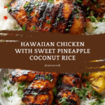 Hawaiian Chicken & Coconut Rice is a vibrant and flavorful dish that brings tropical tastes right to your dinner table. Juicy chicken thighs marinated in a sweet and tangy glaze pair perfectly with creamy coconut-infused jasmine rice. This easy and colorful meal promises a delightful island-inspired feast for your loved ones.