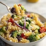 This Healthy High Protein Pasta Salad is a vibrant, nutrient-packed dish perfect for a light lunch or side. Made with protein-enriched rotini, fresh vegetables, tangy feta, and a flavorful homemade vinaigrette, it’s a delicious no-mayo option that’s easy to prepare and satisfying.