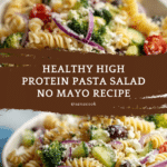 This Healthy High Protein Pasta Salad is a vibrant, nutritious dish packed with fresh vegetables and flavorful herbs. It’s perfect for a light lunch or a satisfying side, all without any mayo. The zesty vinaigrette ties everything together for a refreshing and protein-rich meal.
