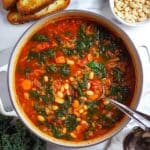 Keywords: Mediterranean soup, kale soup, healthy soup, low-cholesterol meal, vegetable soup, bean soup, dairy-free creamy soup