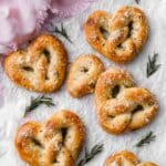 Keywords: pretzels, heart-shaped pretzels, rosemary pretzels, sea salt pretzels, homemade pretzels, savory snack
