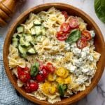 Store the pasta salad in an airtight container in the refrigerator for up to 3 days. Because of the fresh vegetables and cottage cheese, it’s best enjoyed within this timeframe. When ready to eat, give it a gentle stir and serve chilled or at room temperature. Avoid freezing as it can affect the texture of the cottage cheese.
