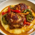 This Italian Dressing Baked Chicken Thighs recipe offers a flavorful and easy weeknight meal featuring tender, juicy chicken thighs marinated in zesty Italian dressing and baked with colorful bell peppers and onions to create a delicious, comforting dish with crispy skin and savory vegetables.