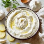 Lebanese Garlic Sauce, also known as Toum, is a creamy, garlicky condiment perfect for adding bold flavor to grilled meats, sandwiches, and vegetables. This easy-to-make sauce combines fresh garlic, lemon juice, and oil emulsified into a fluffy, smooth texture that enhances any dish.