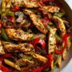 - Combine and Season: Return the cooked chicken back into the skillet with the vegetables. Add the chopped sun-dried tomatoes and sprinkle in the dried oregano, basil, and thyme. Season with additional salt and black pepper to taste, and toss everything together thoroughly to combine all flavors.