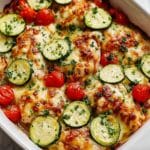 This Mediterranean Chicken Zucchini Bake is a healthy, flavorful, and easy-to-make dish combining tender chicken breasts, fresh zucchini, cherry tomatoes, and aromatic herbs, all topped with melted mozzarella and Parmesan cheese. Perfect for a nutritious weeknight dinner, it’s baked until bubbly and golden, then garnished with fresh parsley for a vibrant finish.