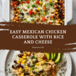 This Mexican Chicken Casserole is a flavorful and comforting one-dish meal perfect for busy weeknights. Packed with tender chicken, black beans, corn, and melted cheddar cheese, it’s a satisfying dinner that requires minimal prep.