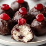 Keywords: cherry caramel balls, no bake cherry dessert, chocolate cherry treats, fudge balls, holiday sweets