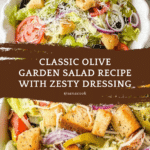 This Olive Garden Salad Recipe recreates the beloved Italian-inspired salad featuring crisp iceberg lettuce, tangy pepperoncini, ripe Roma tomatoes, black olives, and crunchy croutons, all tossed with a flavorful homemade Italian dressing rich in garlic, vinegar, and Parmesan cheese. It’s an easy-to-make fresh salad perfect as a starter or side dish for any meal.