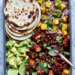 A vibrant and flavorful recipe for One Pan Chicken & Pineapple Tacos, combining juicy marinated chicken thighs with sweet pineapple chunks, chipotle spice, and fresh toppings, all roasted together for a delicious and easy meal perfect for taco night.