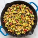 This One Pan Mexican Quinoa is a flavorful, hearty, and nutritious vegetarian dish featuring quinoa cooked with black beans, fire-roasted tomatoes, corn, and spices. Enhanced with creamy avocado, fresh lime juice, and cilantro, this easy and colorful skillet meal comes together quickly for a perfect weeknight dinner or healthy lunch.