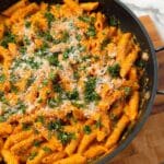 Any pasta you prefer works well, but medium shapes like penne, rigatoni, or fusilli hold the sauce nicely. Spaghetti or linguine are good options too if you prefer long pasta.