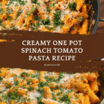 This one pot creamy spinach tomato pasta is a delicious and easy meal that combines fresh tomatoes, spinach, and a luscious creamy sauce. Perfect for a comforting weeknight dinner, it requires minimal cleanup and bursts with vibrant flavors.