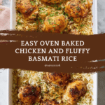 This oven-baked chicken and rice recipe is a comforting and flavorful one-pan meal that’s simple to prepare. Tender marinated chicken thighs bake perfectly on a bed of fragrant basmati rice, creating a satisfying dish ideal for any night of the week.