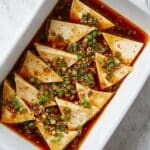 - Garnish and Serve: Remove the tofu from the pan and garnish with the remaining thinly sliced green onions. Serve warm as a main or side dish.