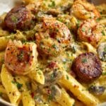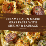 Keywords: Mardi Gras pasta, Cajun pasta, creamy Cajun pasta, chicken shrimp pasta, andouille sausage pasta, Cajun seasoning recipe, Mardi Gras recipe