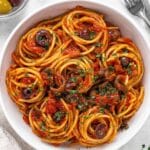 Pasta Puttanesca is a vibrant and flavorful Italian dish known for its bold combination of olives, capers, garlic, and tomatoes. This classic recipe features spaghetti tossed in a zesty sauce made from San Marzano tomatoes, black olives, capers, and red pepper flakes, finished with fresh parsley and extra virgin olive oil. It’s a quick and easy meal that balances savory, salty, and spicy notes perfectly.