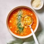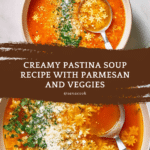 A comforting and creamy Italian-style Pastina Soup made with tender pureed vegetables, low-sodium chicken broth, and tiny pasta, topped with fresh parsley and grated Parmesan cheese. This easy-to-make soup is perfect for a quick weeknight meal or to soothe a cold.