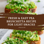 This Pea Bruschetta Recipe offers a fresh and vibrant twist on the classic Italian appetizer. Featuring a creamy pea topping blended with Parmesan, garlic, and lemon, served on toasted ciabatta slices and garnished with pea shoots and a drizzle of olive oil, it’s a light and flavorful starter perfect for spring and summer gatherings.