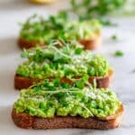 This Pea Bruschetta Recipe offers a fresh and vibrant twist on the classic Italian appetizer. Featuring a creamy pea topping blended with Parmesan, garlic, and lemon, served on toasted ciabatta slices and garnished with pea shoots and a drizzle of olive oil, it’s a light and flavorful starter perfect for spring and summer gatherings.