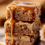 Chewy peanut butter caramel cookie bars featuring layers of rich peanut butter and gooey caramel atop a soft cookie base. These bars are sweet, nutty, and perfect as a decadent treat or dessert.